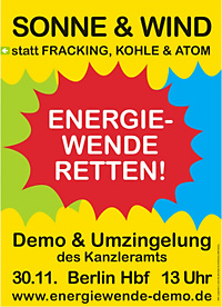 Und plötzlich sind sie wieder da und rocken die Mitte von Berlin: 16.000 Demonstranten, die in den unsäglichen Energiewendeplänen der neuen Großen Koaltion ganz klar ein Abwürgen der Energiewende zugunsten von Kohle- und Atomkraftlobby sehen, jedoch diese Pläne mit aller Macht durchkreuzen und ohne wenn und aber raus wollen aus der offenkundig unbeherrschbaren Atom- und klimaschädigenden Kohlekraft.
