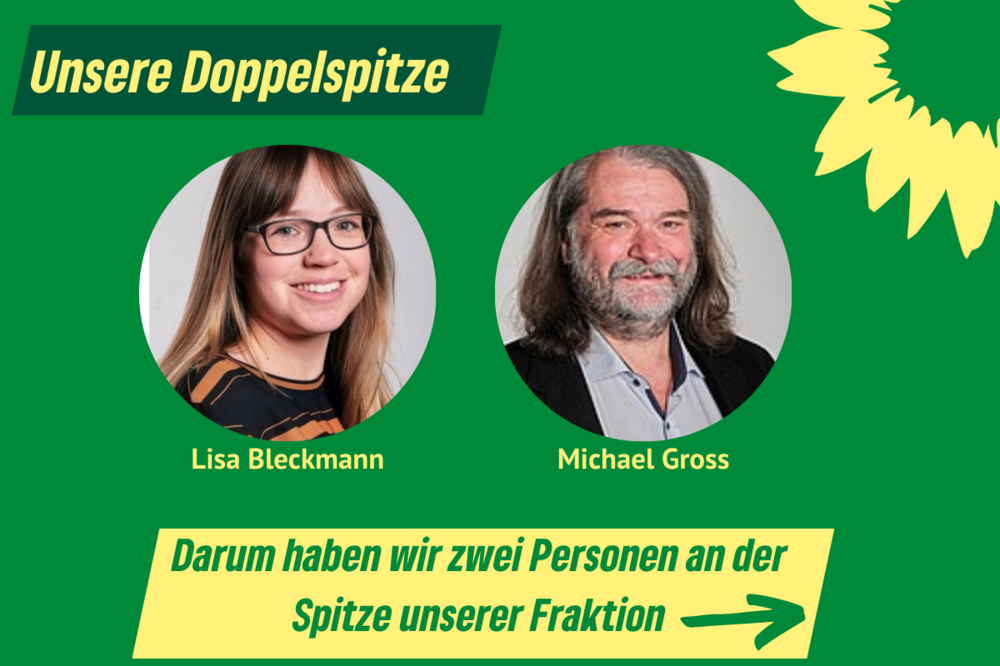 Wie Ihr bestimmt schon mitbekommen habt, haben wir Grünen der Stadtratsfraktion nun eine Doppelspitze. Michael Gross und Lisa Bleckmann stehen unserer Fraktion als gleichberechtigtes Duo vor. Aufgrund der folgenden Gründe sehen wir das System der Doppelspitze als Zukunft der demokratischen Fraktionsorganisation: