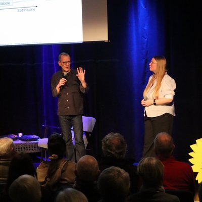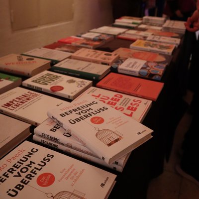 Ergänzt wurde der Abend durch einen Infostand der Omas for Future, die im Eingangsbereich im Lÿz über ihr Engagement für Klimaschutz und generationengerechte Politik informierten. Zudem lud ein Bücherstand vor dem Veranstaltungsraum zum Stöbern ein, mit Werken von Niko Paech sowie weiterer Literatur zu Postwachstumsökonomie, Nachhaltigkeit und einem ressourcenschonenden Lebensstil.