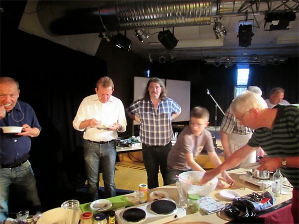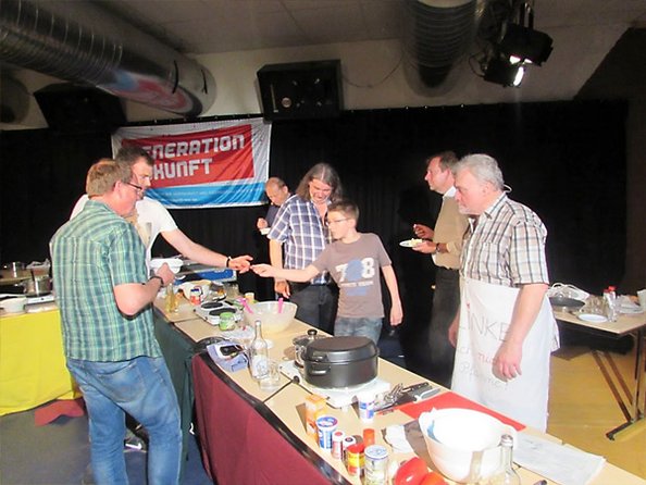 Gestern ging es in der BlueBox heiß her. Unsere Bürgermeisterkandidatin und Bürgermeisterkandidaten kochten. Gequallte Gestalte, Kartoffelsalat, Bratkartoffeln und Hirteneintopf. Alles war lecker !