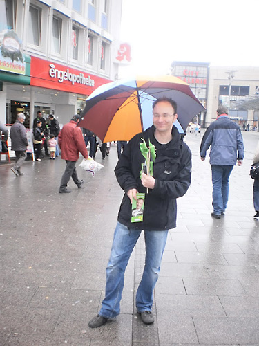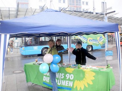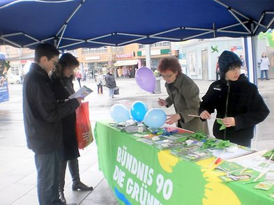 Mit guter Laune und Kuchen lief die Plakat-Aktion der Siegener Grünen für den Landtagswahlkampf am Wochenende an.
